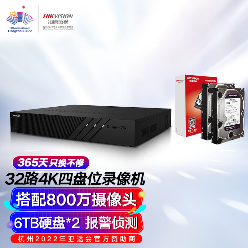 海康威视网络硬盘录像机监控32路4盘位兼容8TNVR满配32个摄像头带6TB硬盘DS-7932N-R4价格:4517.00元!