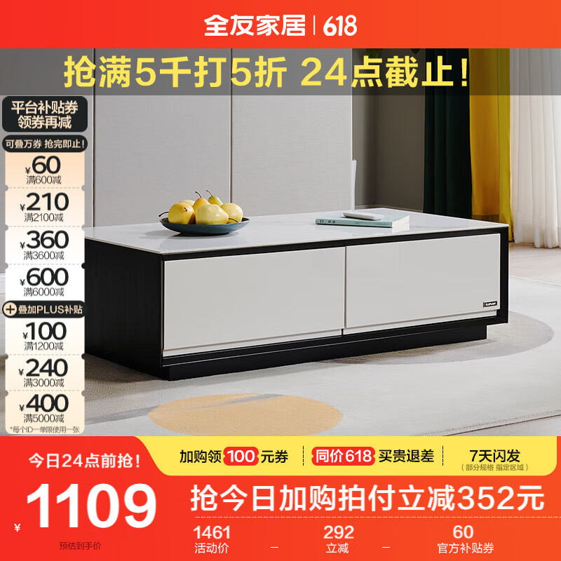 全友家居 茶几大小户型岩板台面茶台现代客厅家具DW1055价格:1461.25元!