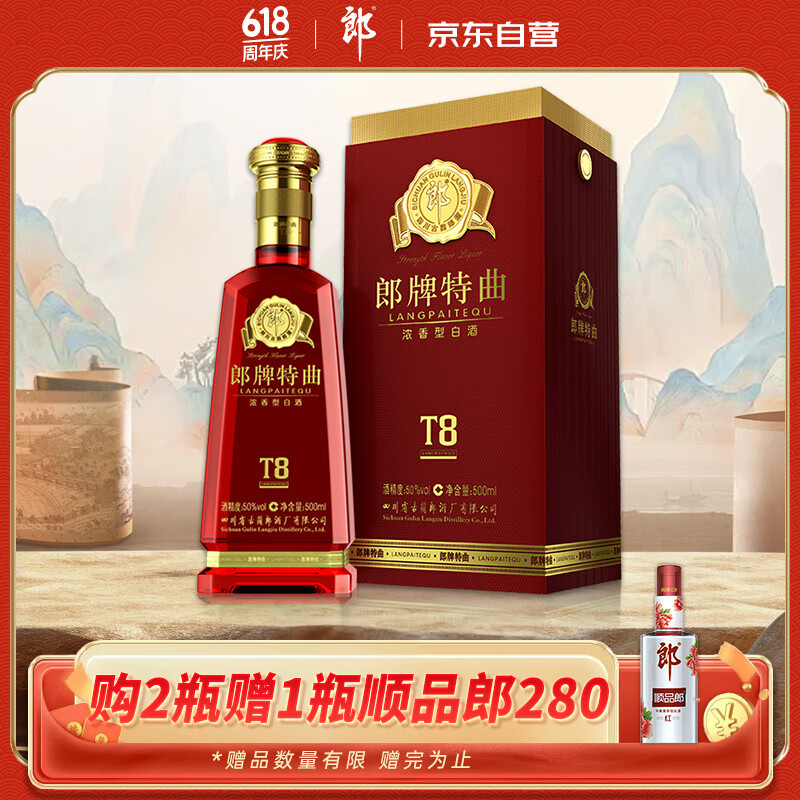 郎酒 郎牌特曲T8 兼香型白酒 50度500ml 单瓶装 新老包装随机发货价格:209.00元!