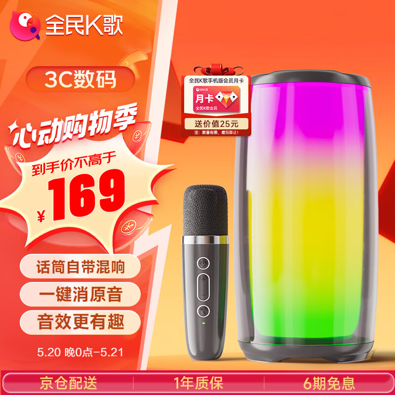K歌 MZ21便携蓝牙音箱 炫彩小音箱+儿童麦克风 家庭KTV桌面音响 防水设计 户外大音量广场舞 午夜黑价格:169.00元!
