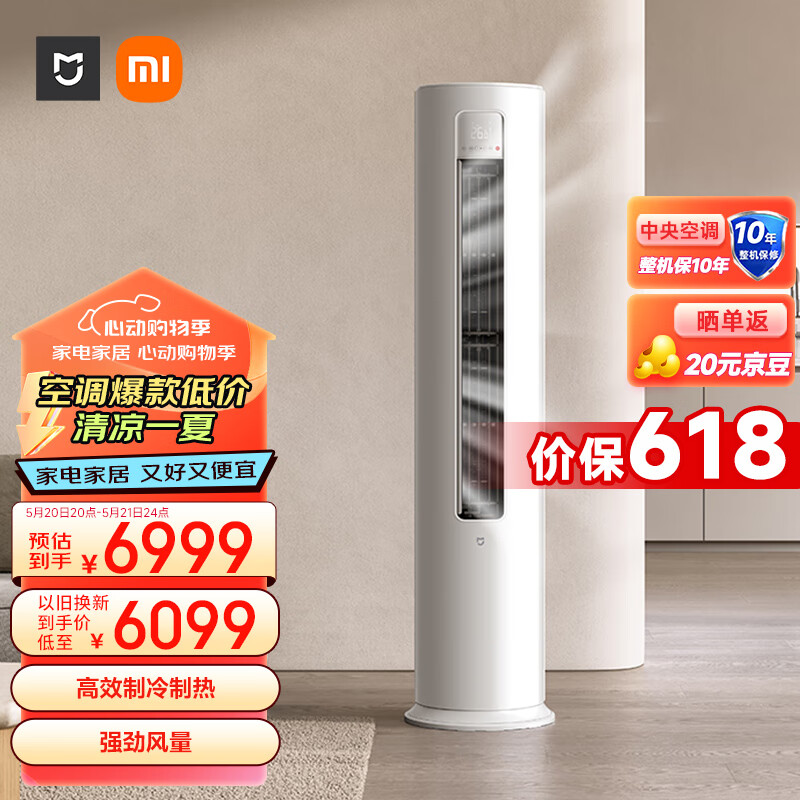 小米5匹 新能效 变频冷暖380V 内机自动清洁 客厅圆柱空调立式柜机 KFR-120LW/N1A3 巨省电价格:6999.00元!