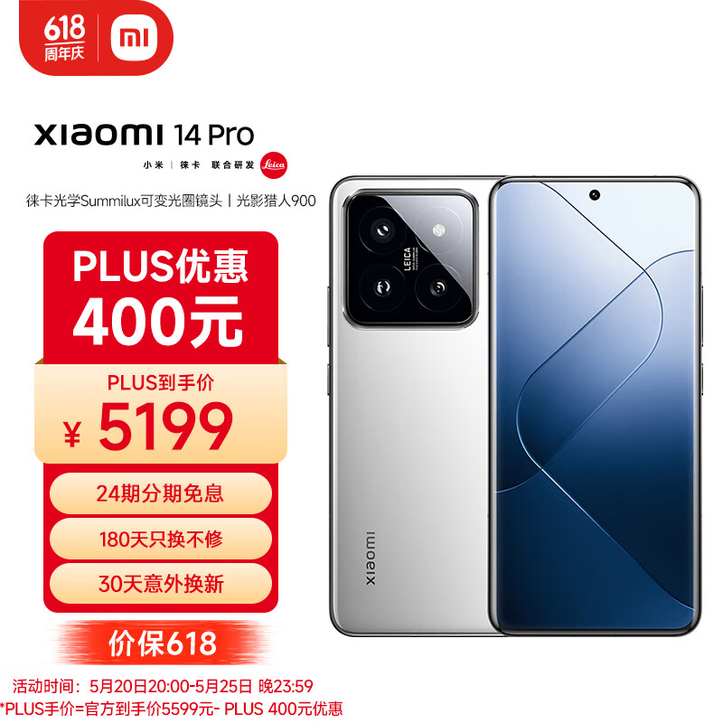 小米14Pro 徕卡可变光圈镜头 光影猎人900 澎湃OS 16+1T 白色 5G AI手机 小米汽车互联价格:5599.00元!