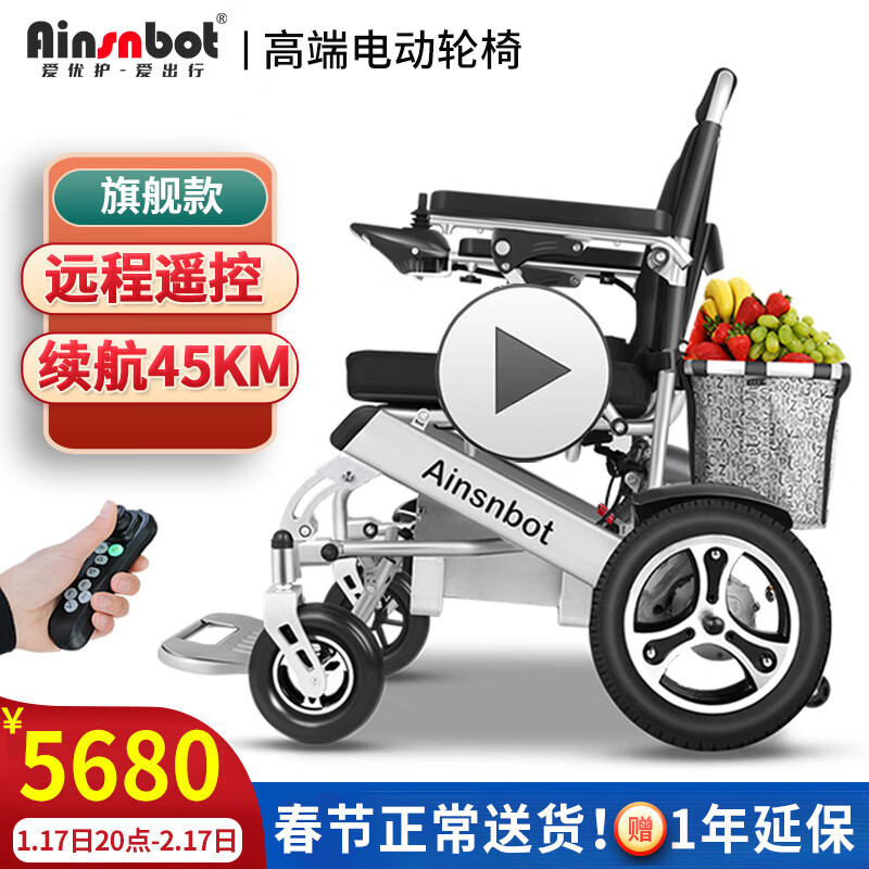 Ainsnbot 电动轮椅车 智能遥控全自动老年人残疾人家用出行轻便可折叠旅行老人越野轮椅车双人 32A锂电池价格:5980.00元!