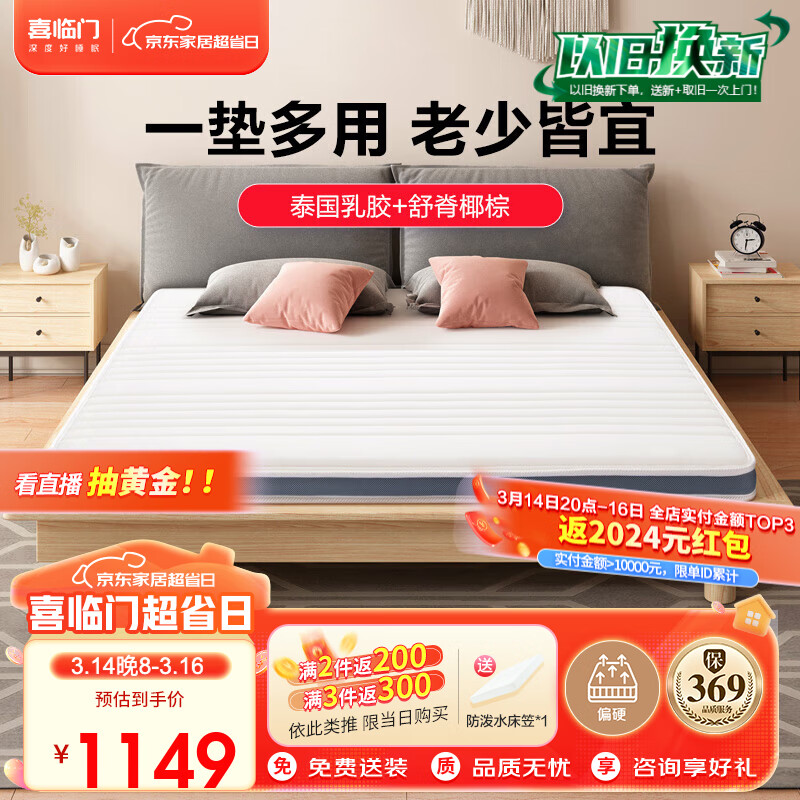 喜临门薄垫 1cm乳胶4cm椰棕床垫 青少年床垫 伊菲8升级版2S 1.2x2.0米价格:1149.00元!