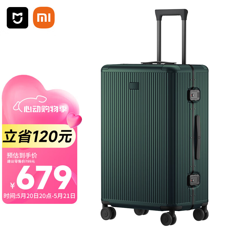 米家小米行李箱26英寸铝框拉杆箱箱大容量旅行箱男女密码箱皮箱子绿色价格:679.00元!