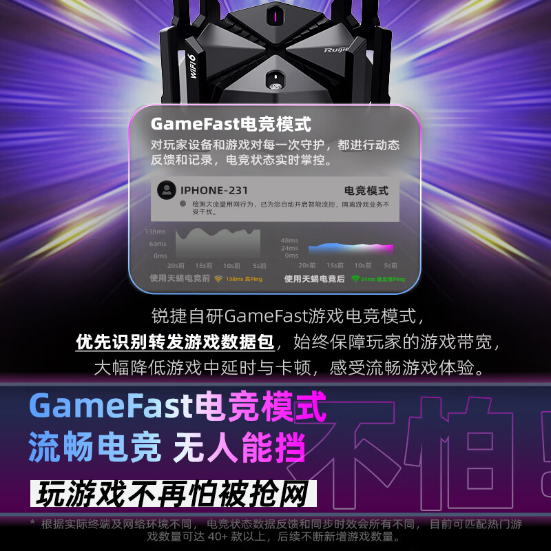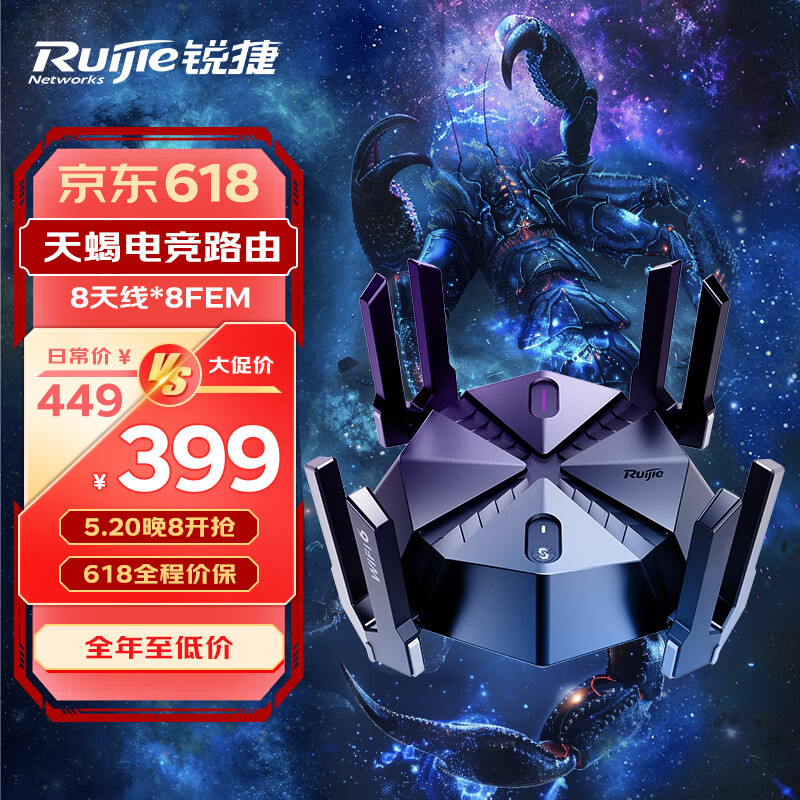 锐捷(Ruijie)星耀天蝎电竞路由器X60PRO 无线千兆WiFi6 穿墙王ax6000 5G游戏加速 6000M 2.5G网口价格:399.00元!