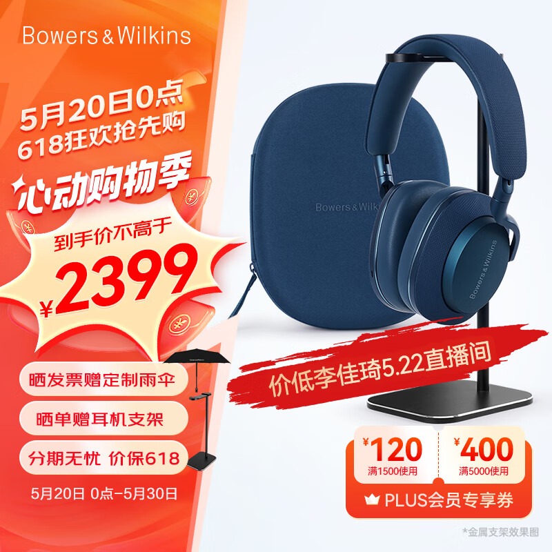宝华韦健(B&W) Px7S2e 无线HIFI头戴式主动降噪蓝牙耳机Bowers&WilkinsPx7二代升级款智能音乐耳麦 海空蓝价格:2399.00元!