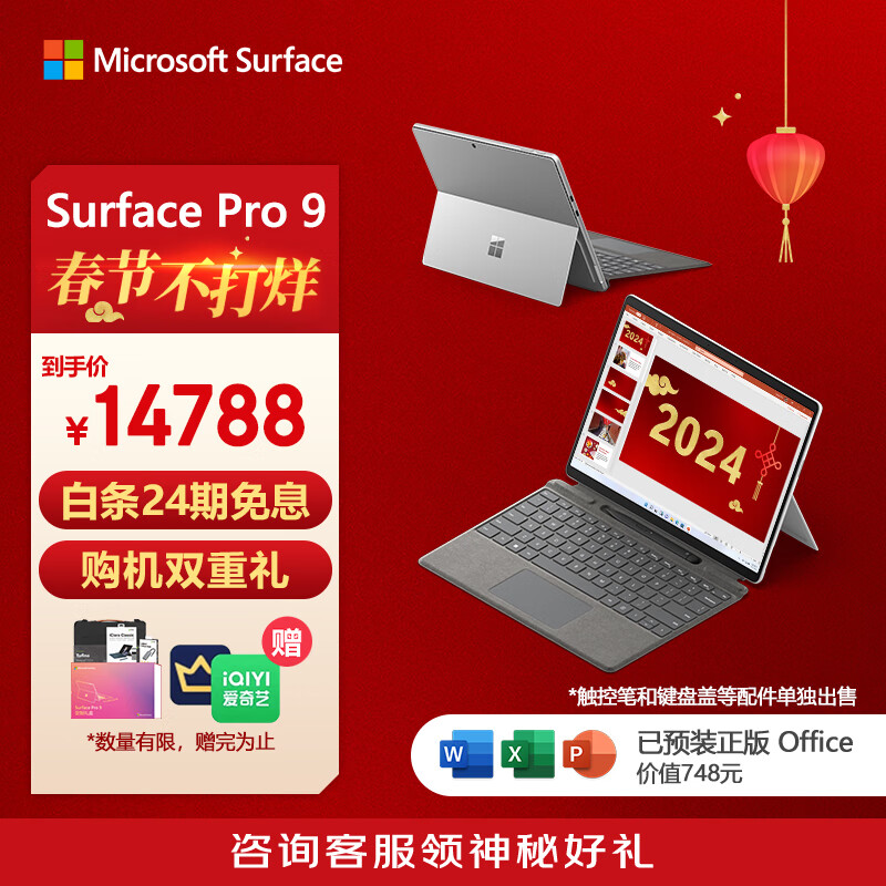 微软Surface Pro 9 二合一平板电脑i7/16G/512G亮铂金 13英寸高刷触控 年货节学习机 办公 笔记本电脑价格:14788.00元!