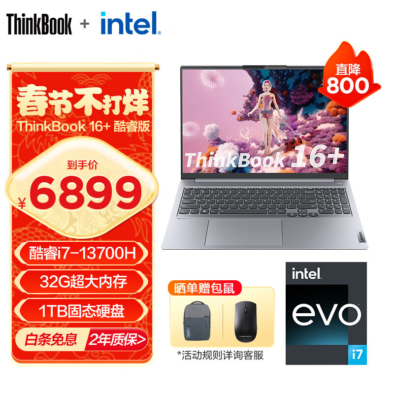 ThinkPad 联想ThinkBook 16+ 13代英特尔Evo酷睿标压处理器 16英寸轻薄笔记本电脑 2.5K 【升级】i7-13700H 32G 1T 0PCD价格:7699.00元!