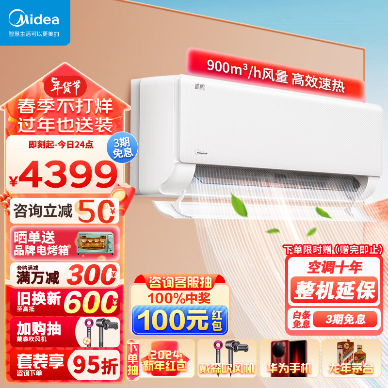 美的(Midea)空调 2匹挂机 机煌 新一级能效 壁挂式全直流变频 冷暖大风量 低噪 KFR-46GW/JH1-1价格:4399.00元!