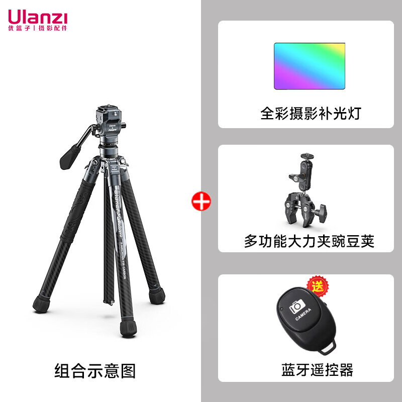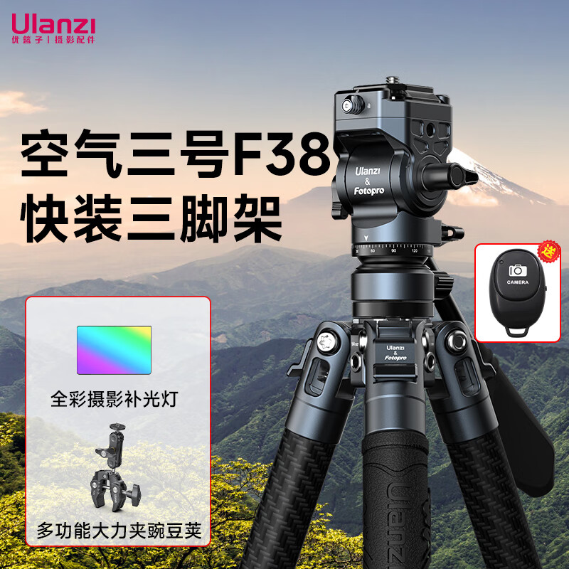 ulanzi优篮子空气三号F38碳纤维三脚架RGB补光套餐液压全景云台便携户外快装快拆数码相机摄影三角架价格:1299.00元!