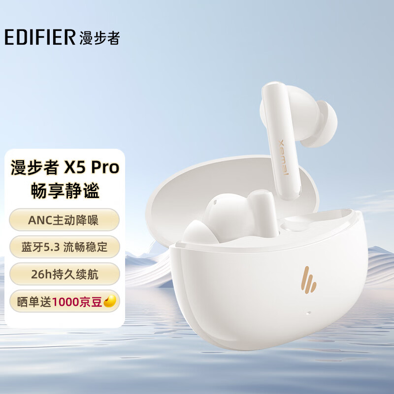 漫步者(EDIFIER)声迈X5 Pro 真无线主动降噪蓝牙耳机 无线耳机 入耳式耳机 适用苹果华为小米OPPO 润白价格:169.00元!