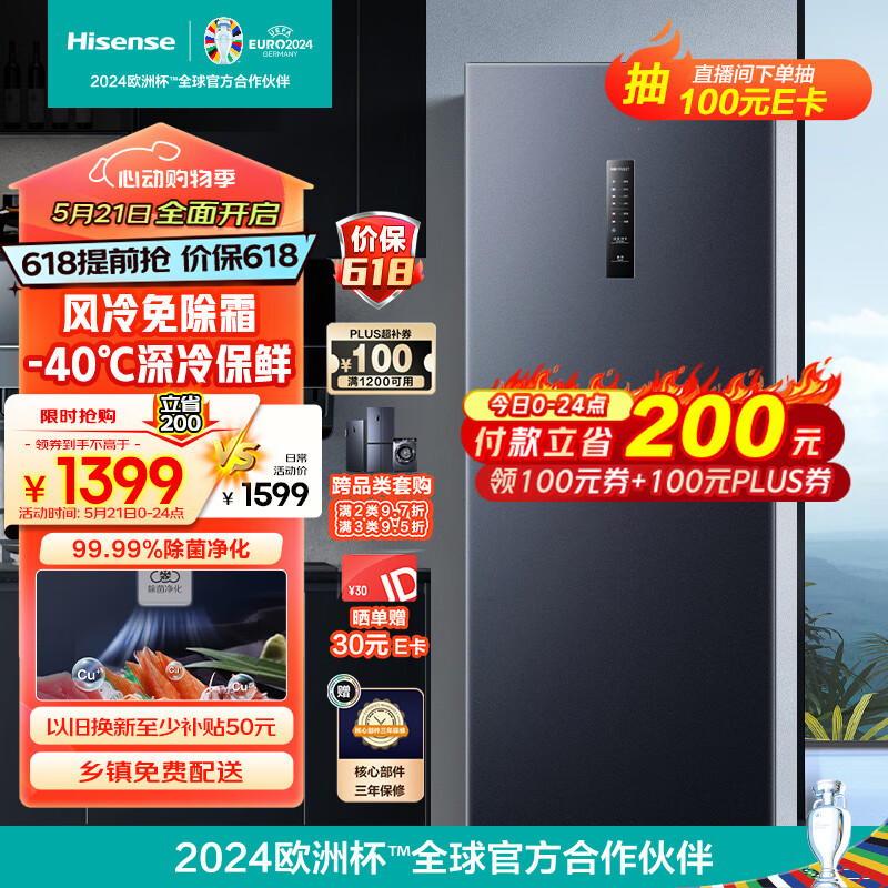 海信(Hisense)159升立式冰柜家用 -40℃深冷风冷无霜除菌冷柜 母乳冷藏冷冻转换 抽屉式单门小冰箱BD-159WVUT价格:1589.00元!