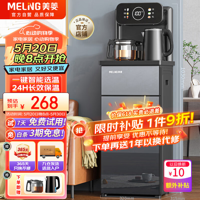 美菱(MeiLing)茶吧机家用高端客厅多功能智能遥控立式下置式饮水机全新升级【玻璃彩屏】温热款MY-C565价格:298.00元!
