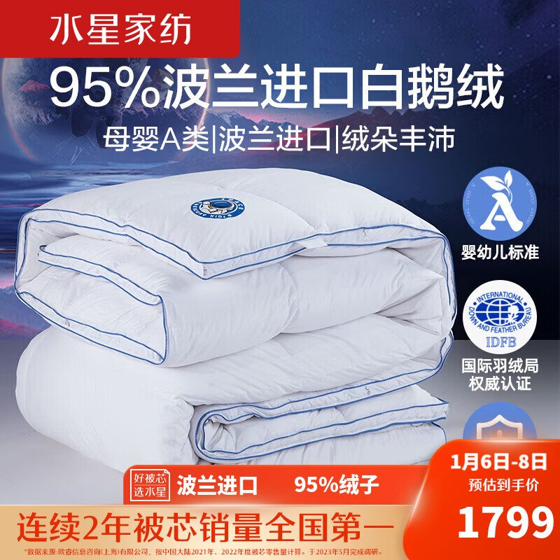 水星儿童 太空人 A类95%波兰进口白鹅绒羽绒被 冬被约1000g填充 200*230cm白价格:2799.00元!