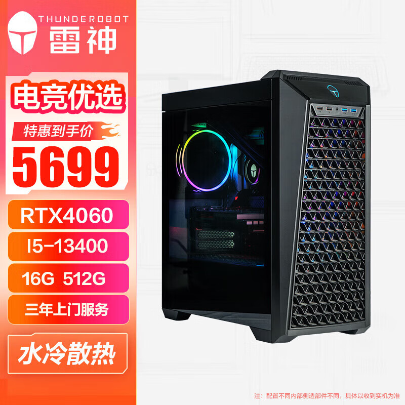 雷神(ThundeRobot)黑武士SE 水冷游戏台式电脑电竞主机(13代i5-13400 16G RTX4060 512GSSD 水冷散热)价格:5699.00元!