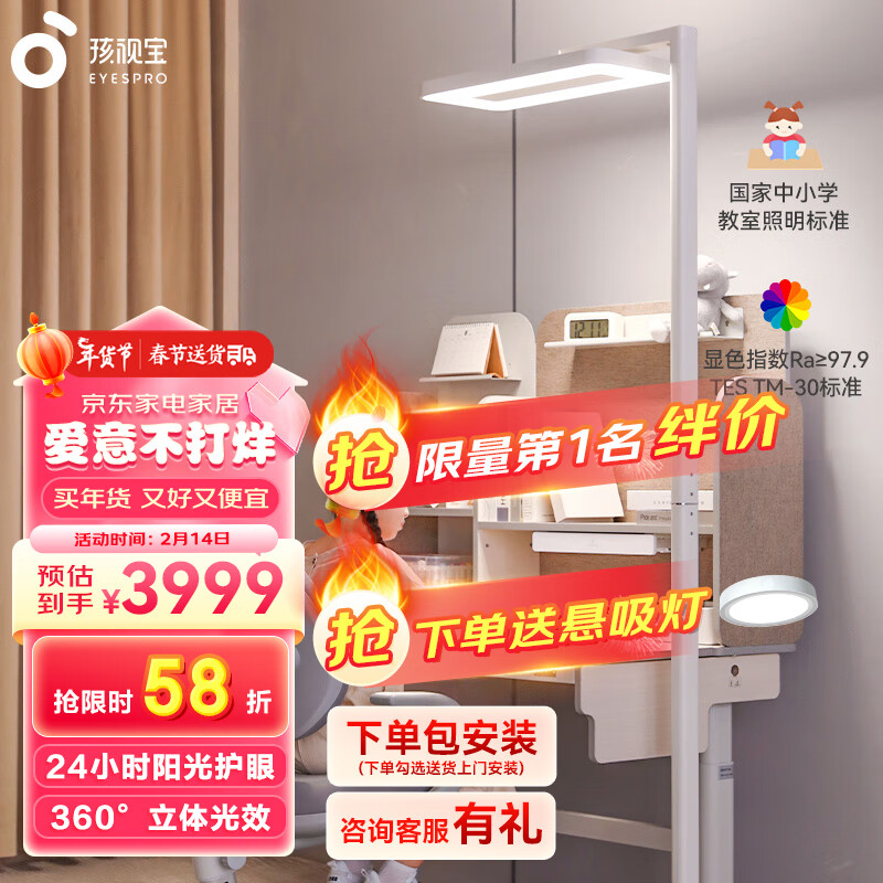 孩视宝立式护眼台灯学习专用全光谱落地大路灯儿童书房LED钢琴灯130WE3B价格:6999.00元!