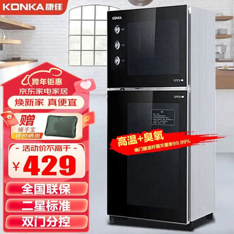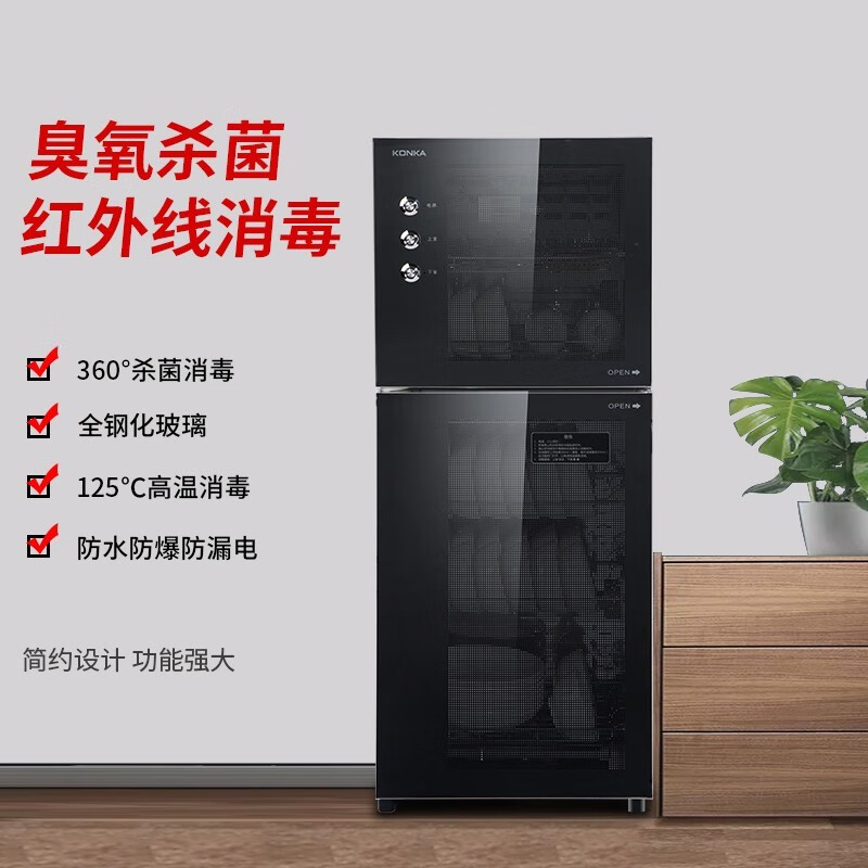 康佳(KONKA)消毒柜家用立式高温消毒柜商用厨房消毒碗柜大容量双门碗筷餐具茶杯高温消毒碗柜 二 85L 145型高温双室(上2层下3层)价格:399.00元!