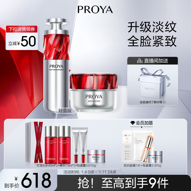 珀莱雅红宝石面霜(轻盈)+精华护肤品套装 护肤礼盒 化妆品套装 礼物价格:668.00元!