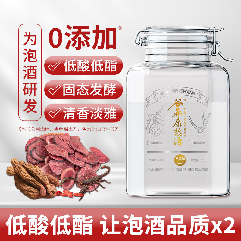 谷养康粮食酒 泡酒用酒大瓶清香高粱酒白酒泡果酒泡药酒水果酒纯粮酒 60度 2.5L 1瓶 适合动物类【质选】价格:1040.00元!