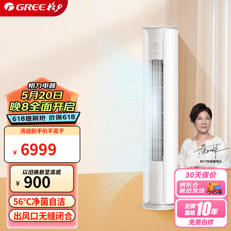 格力(GREE)2匹 京畅 新一级能效 变频冷暖 净菌自洁 立柜式空调柜机 KFR-50LW/(50587)FNhAc-B1(JDWIFI)价格:6999.00元!