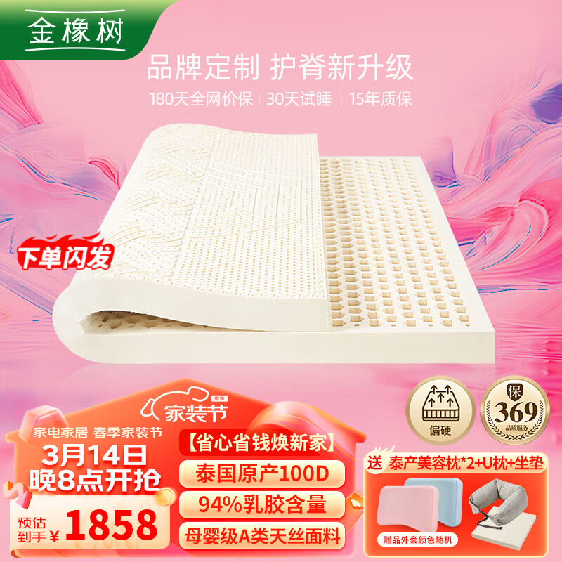 金橡树高密度100D泰国原产进口天然乳胶床垫1.5米品牌定制 大女主价格:1858.00元!