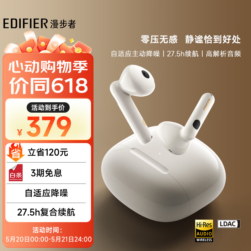漫步者(EDIFIER)Lolli3 ANC 真无线主动降噪蓝牙耳机 半入耳自适应主动降噪 蓝牙5.3 适用苹果小米华为 云白色价格:379.00元!