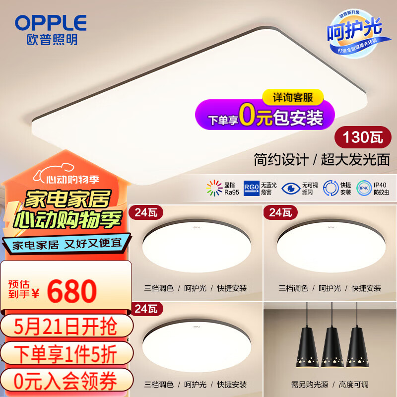 欧普照明(OPPLE) 吸顶灯客厅大灯可调光LED照明灯具灯饰套餐1呵护光价格:1360.00元!