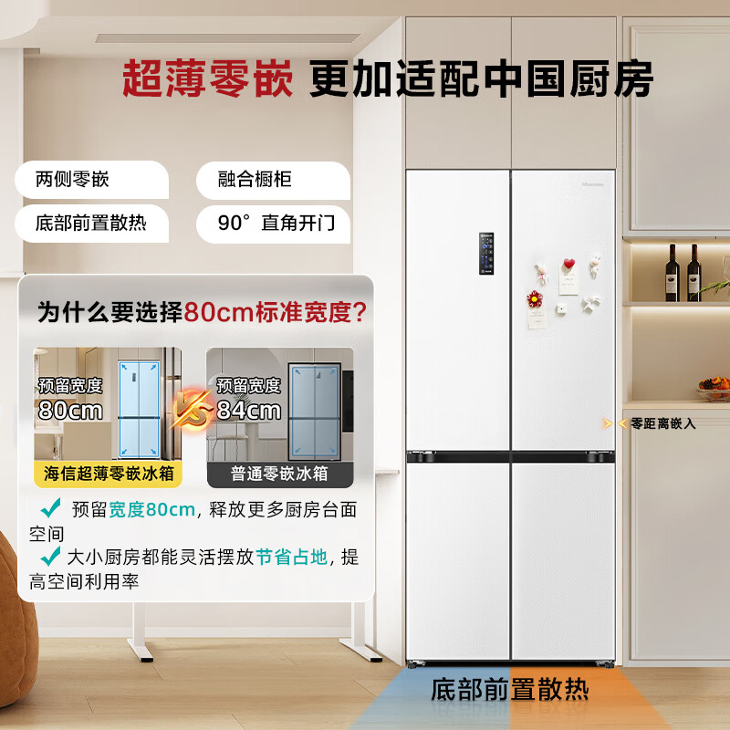 海信(Hisense)470小魔方冰箱超薄零嵌入式四开门冰箱十字家用智控变温一级能效双变频净味BCD-470WMK1DPU白价格:3299.00元!