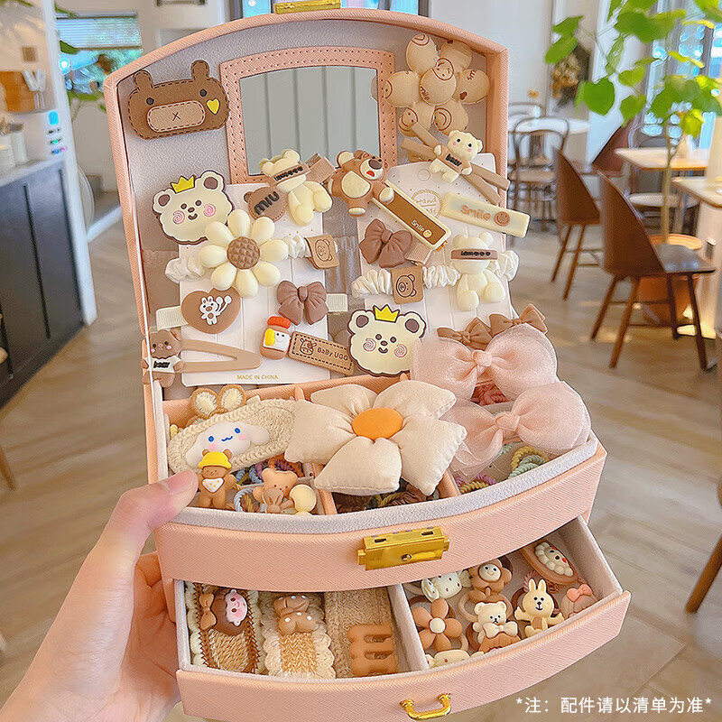 康迪拉家族六一儿童节礼物儿童首饰礼盒DIY发夹发饰女孩过家家玩套装具6-10岁发圈戒指双层收纳公主生日礼物价格:139.00元!