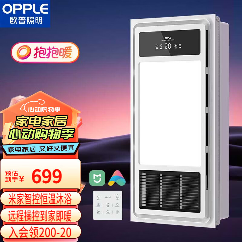 欧普风暖变频恒温浴霸灯米家智能卫生间照明排气一体集成吊顶F1205Y价格:699.00元!