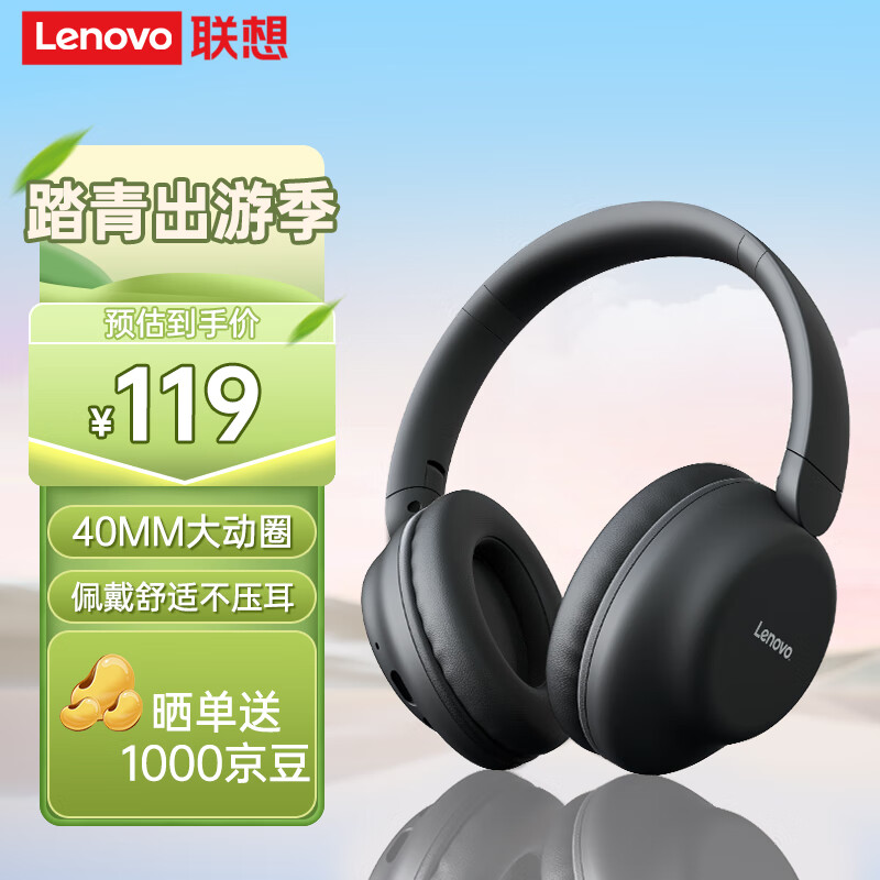 联想(lenovo)蓝牙耳机头戴式真无线耳机降噪学生网课音乐电竞游戏运动隔音适用苹果华为电脑pc手机TC3307黑色价格:139.00元!