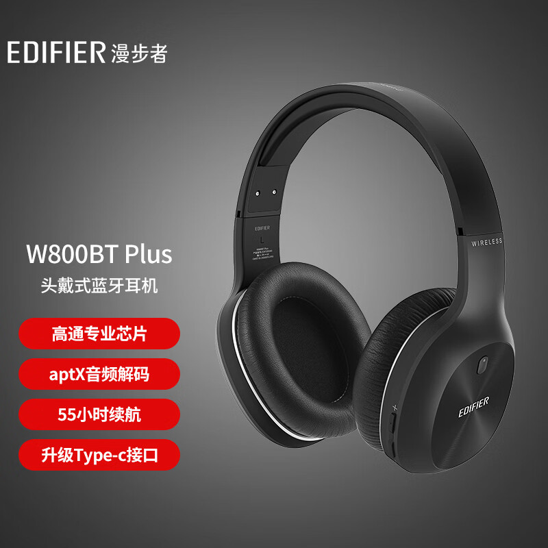 漫步者(EDIFIER)W800BT Plus头戴式立体声蓝牙耳机 音乐耳机 手机耳机 适用苹果华为小米 黑色价格:189.00元!