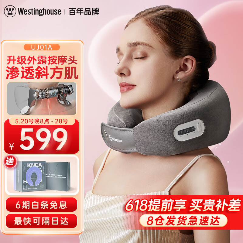 西屋(Westinghouse)美国西屋UJ01A颈椎按摩器枕头U型肩颈按摩仪仿人手物理揉捏颈部按摩仪生日礼物618送父母老婆价格:699.00元!