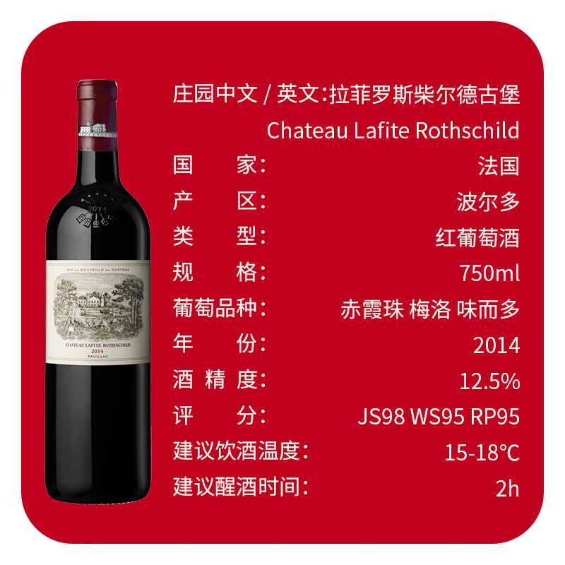 拉菲(LAFITE)/大拉菲 2014年 WE97分 1855一级庄 【法国名庄】价格:6888.00元!