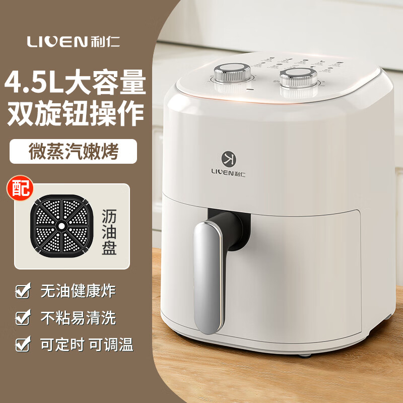 利仁(Liven) 空气炸锅家用大容量4.5升无油电炸锅蒸汽炸锅 多功能煎炸锅空气炸烤箱低脂薯条机KZ-J4503价格:169.00元!