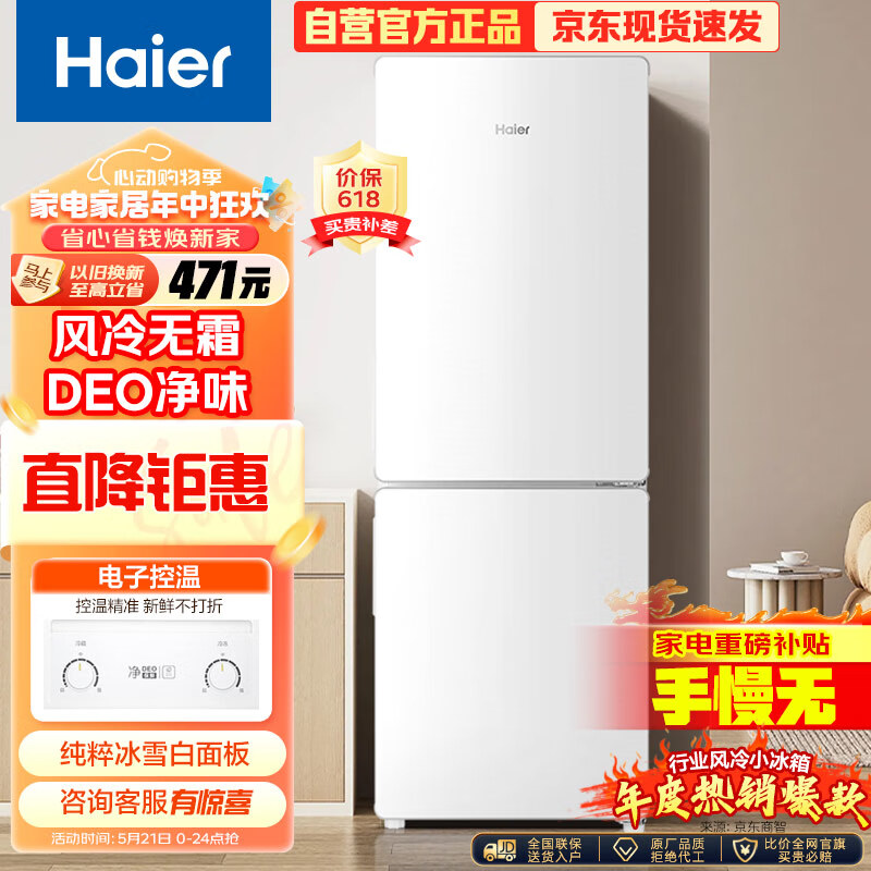 海尔(Haier)170升两门二门双门节能低噪风冷无霜小型家用电冰箱宿舍租房不占地方以旧换新BCD-170WLHC2Z0WV价格:999.00元!