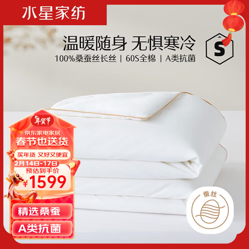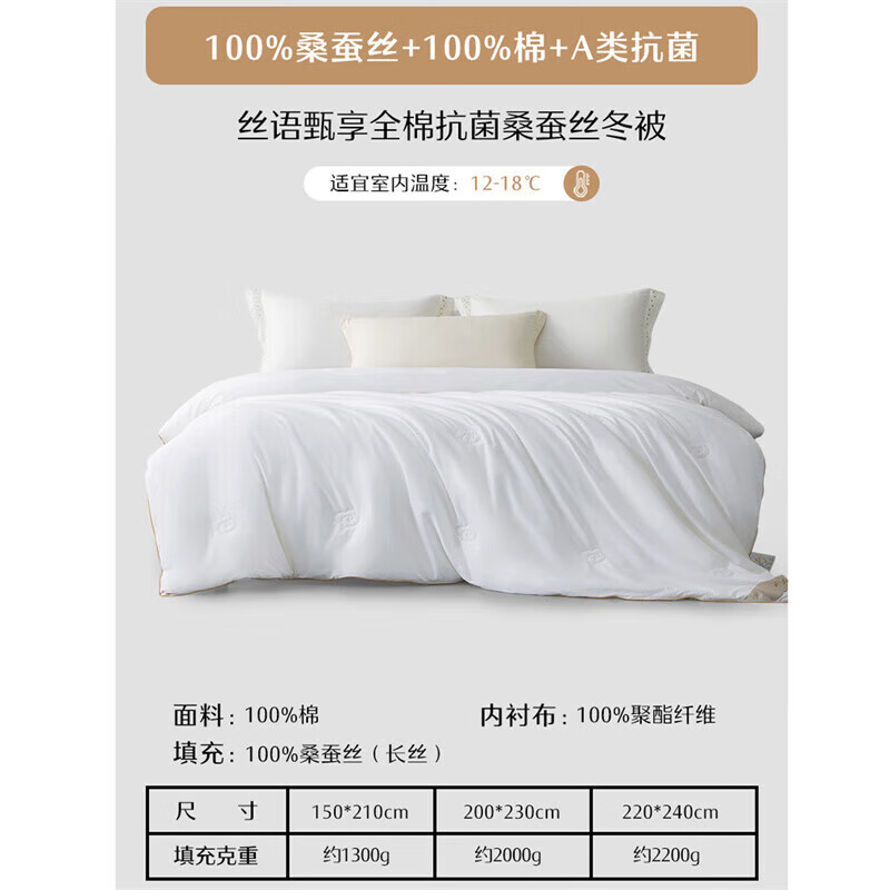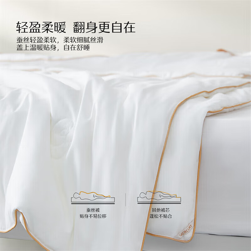 水星家纺A类100%桑蚕丝冬被子约6.6斤200*230cm白价格:3589.00元!