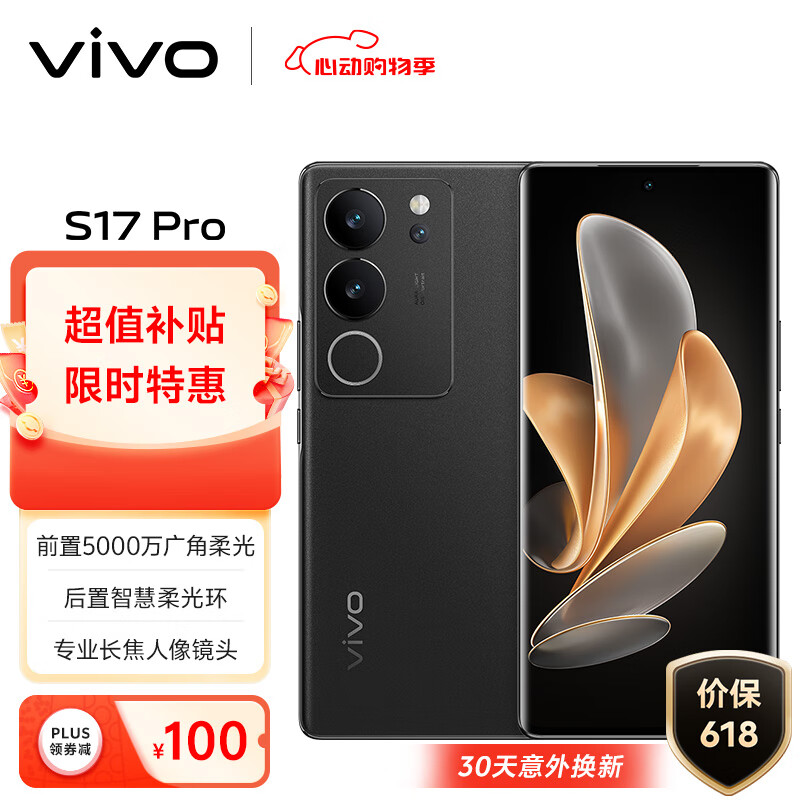 vivo S17 Pro 12GB+256GB 玄黑 前置5000万广角柔光 专业长焦人像镜头 天玑8200芯片 快充 拍照 手机价格:2299.00元!