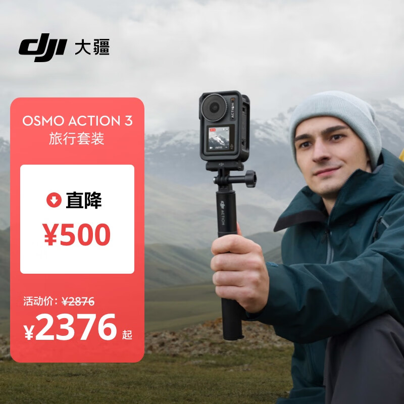 大疆 DJI Osmo Action 3 旅行套装 运动相机 户外露营旅游vlog摄像机便携式+随心换2年版实体卡+128G 内存卡价格:2654.00元!