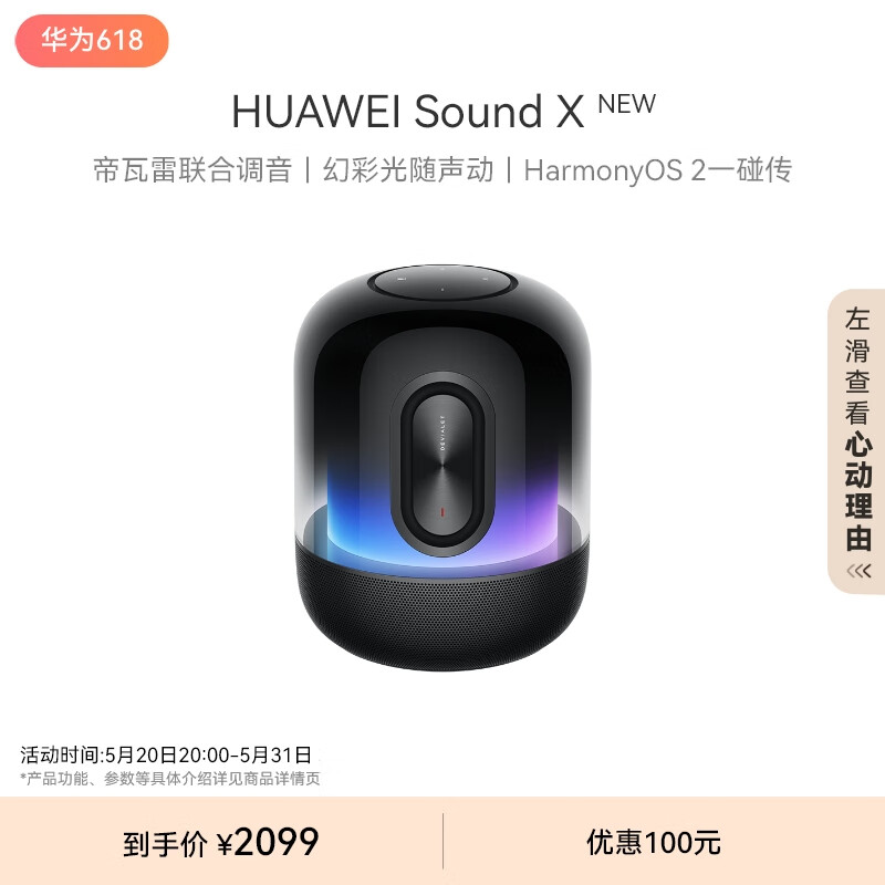 华为Sound X New 蓝牙音箱家用桌面电脑音响 无线立体声帝瓦雷调音 频幻彩灯效智能音响重低音炮价格:1947.00元!