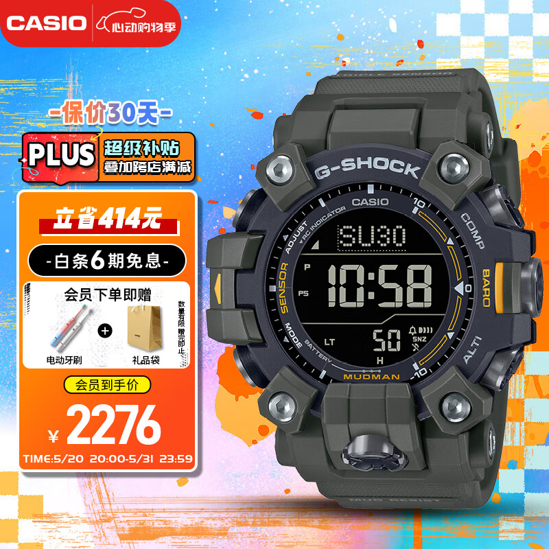 卡西欧(CASIO)手表男士G-SHOCK液晶泥王户外运动电子日韩表520礼物GW-9500-3价格:2690.00元!