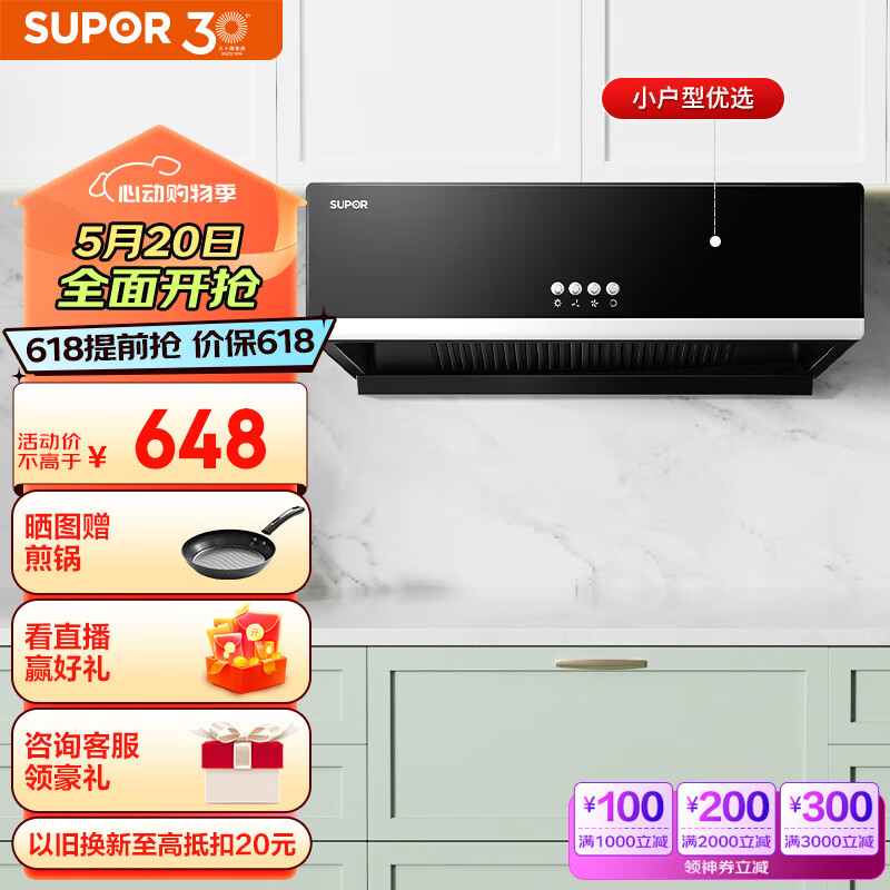 苏泊尔(SUPOR) 抽油烟机 中式厨房家用大吸力脱排吸油烟机 710mm尺寸 顶吸大吸力油烟机 CXW-218-Z1D价格:648.00元!