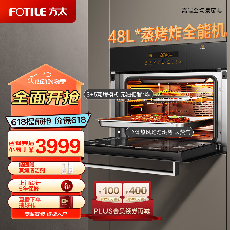 方太蒸烤箱一体机嵌入式蒸箱烤箱家用多功能大容量48/42L蒸烤一体机蒸烤空气炸锅三合一以旧换新ZK-E1价格:4399.00元!