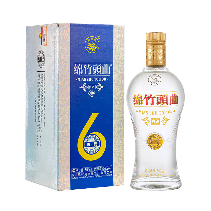 剑南春 珍品 绵竹头曲 6号 52度 500ml*6瓶 整箱装 浓香型白酒价格:298.00元!