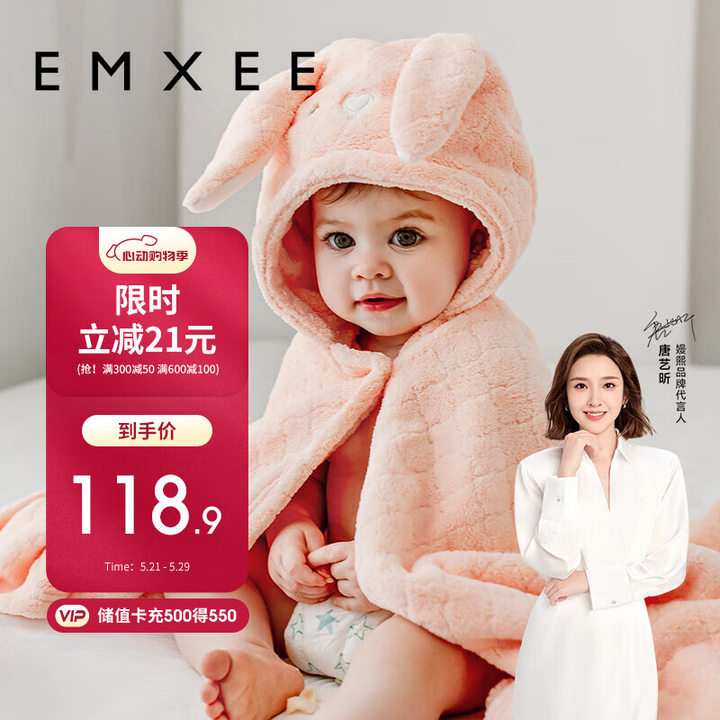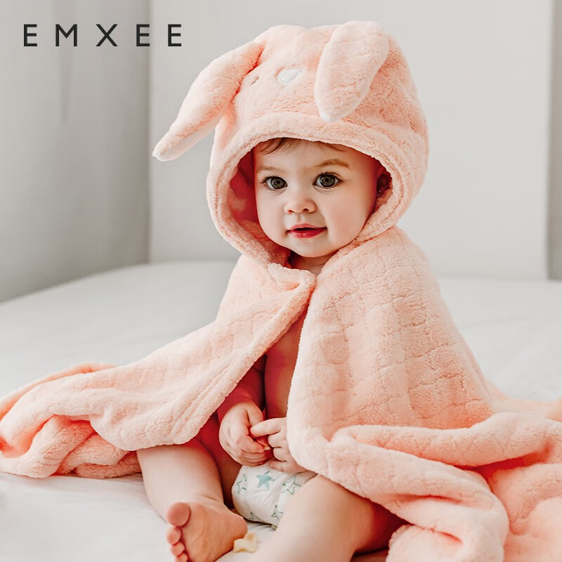嫚熙(EMXEE)儿童浴巾新生儿超软宝宝婴儿秋冬洗澡斗篷浴袍 兔子125*80cm价格:139.90元!