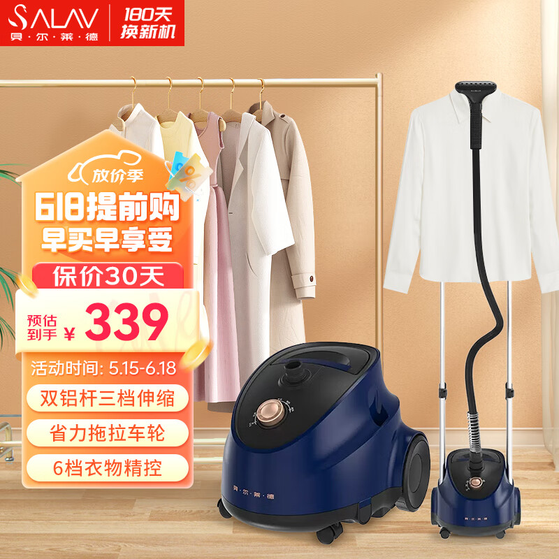 贝尔莱德(SALAV)挂烫机家用小型蒸汽熨斗挂烫双杆六档滚轮熨烫机D11(青)价格:376.00元!