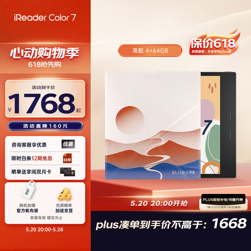 掌阅iReader Color7 彩屏阅读本 电子书阅读器 高刷智能电纸书 便携阅读电子本 辰龙东升·套装 4+64GB价格:1768.00元!