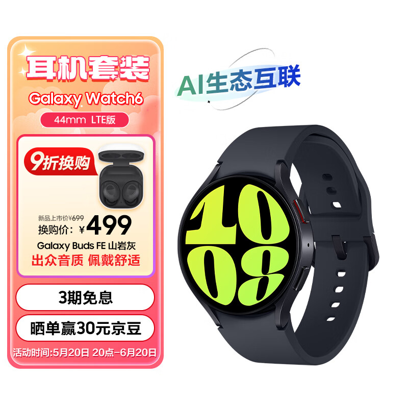 三星Galaxy Watch6 eSIM独立通话/智能手表/运动电话手表/ECG心电分析/血压手表/健康监测 44mm 云影灰价格:2198.00元!