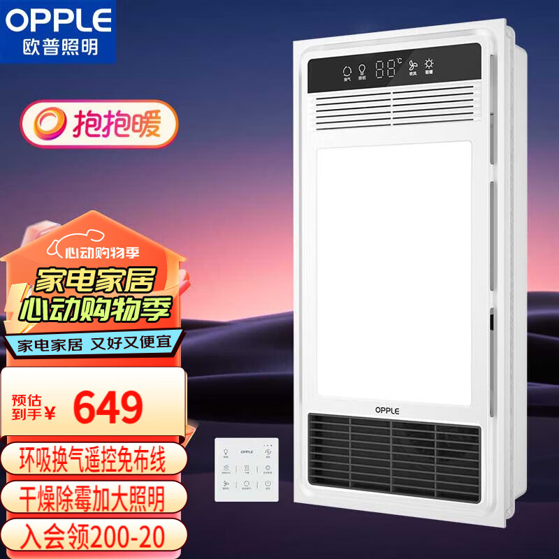 欧普风暖浴霸灯卫生间取暖器照明排气一体集成吊顶无线遥控F1202-Y价格:649.00元!